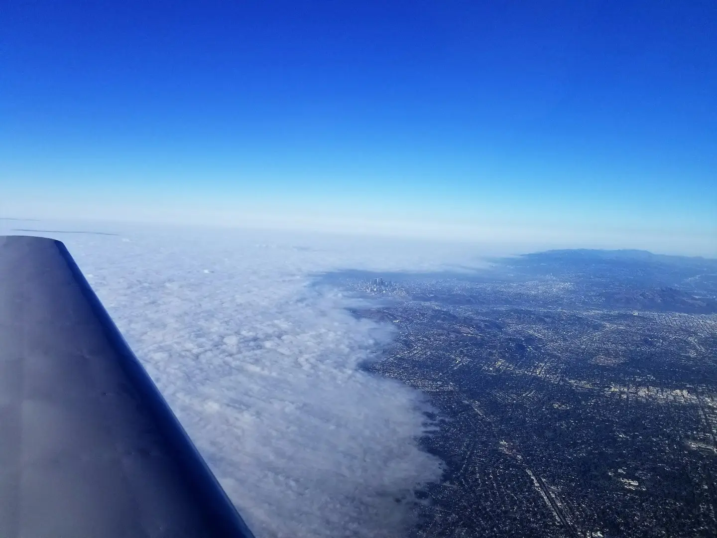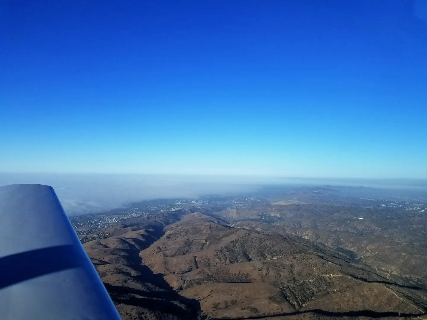 View of the 6-7,000′ “hills” on the way back south, Burbank is just to the right of the nose.