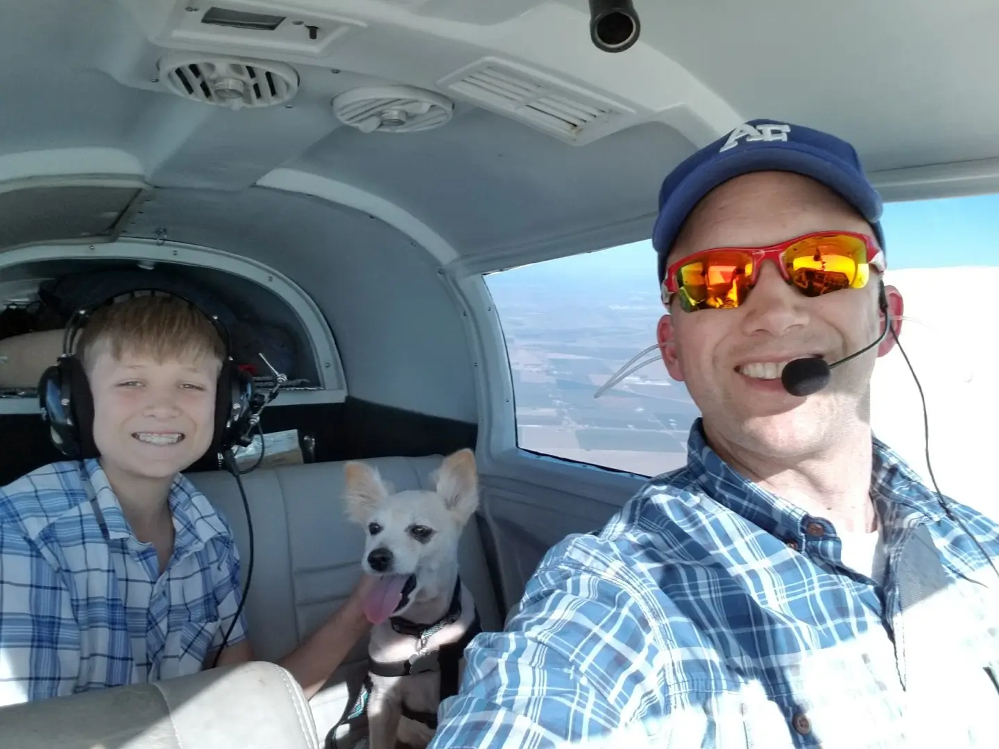 At 6:45am on the nose I received a text that she was back with Thomas and we went out front to meet them. His coat had grown back just a little and she had bought him a little sweater to help keep him warm. A short drive to the airport followed by pre-flight and then we were loading up in the plane.