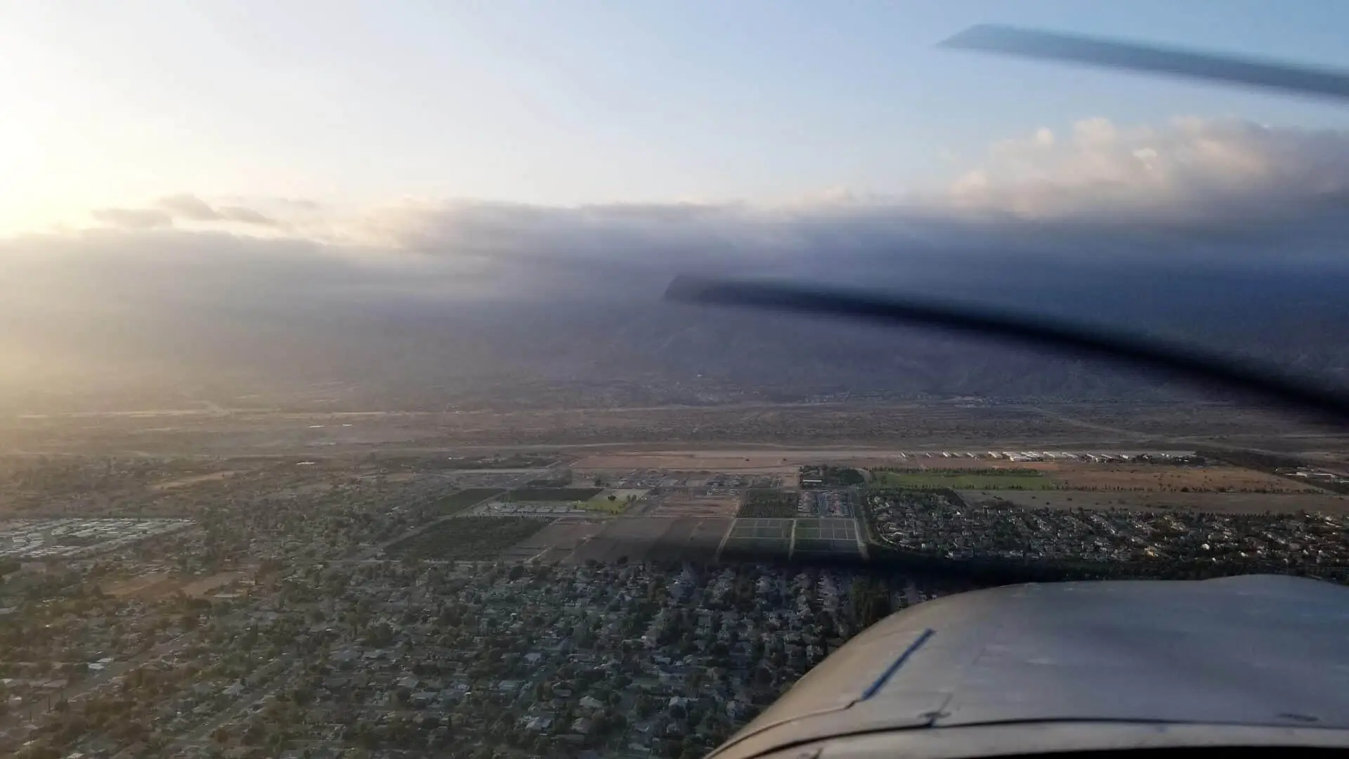 It was a little windy, 10 knots gusting to 18 but coming almost down the runway so not bad. I took off to the West on 25 into clear skies and at 1,200′ banked left, coming around to follow the 91 freeway to the East as I climbed to 3,500′. I hadn’t landed at Redlands before so I thought it would be fun to head over there for a short little cross country.