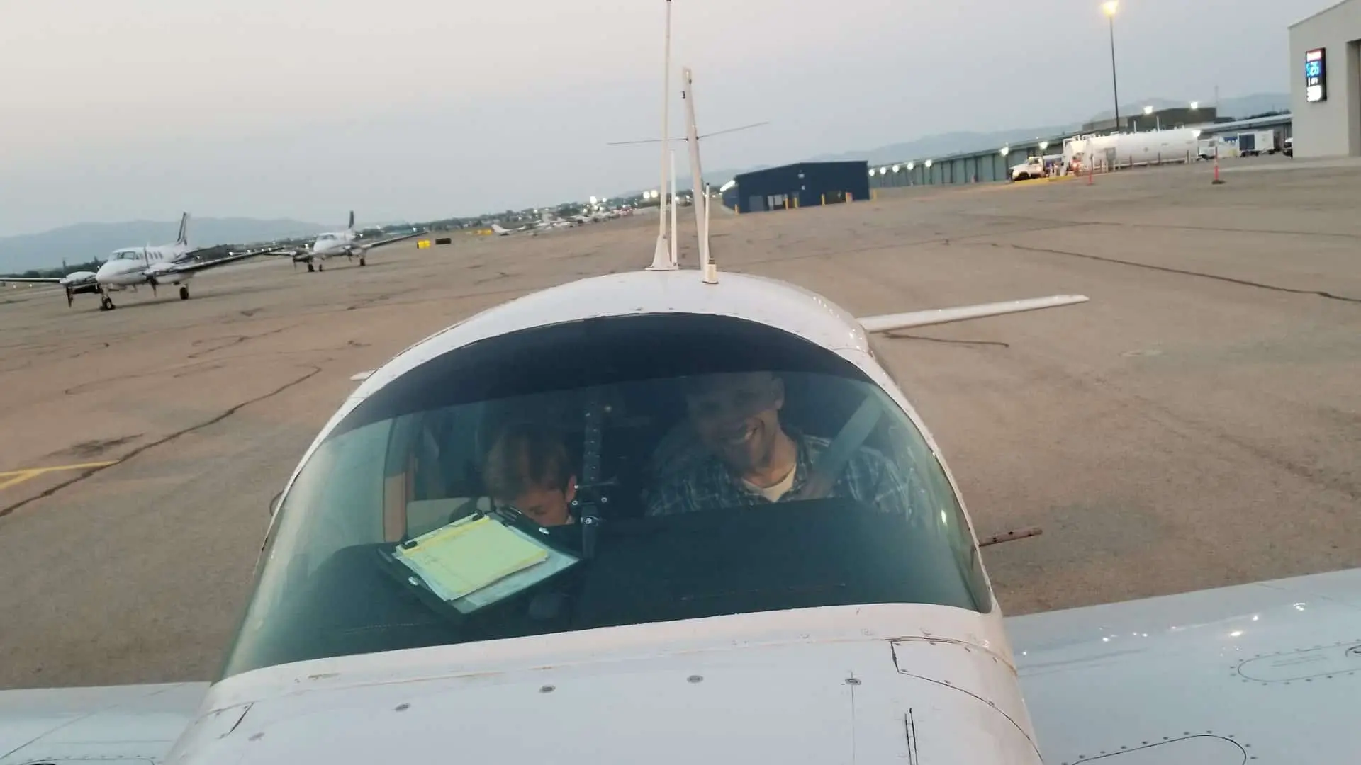 We made the turn back to Richfield and settled in on the 7,100′ runway and taxied to get fuel. My son walked over to the FBO to see if it was unlocked to use the restroom. An older gentleman pulled up and asked if we needed any help. I asked if he knew what time the FBO opened. He said 8am, but if we needed to use the restroom he would drive us over to his hangar and we were welcome to use the one there.