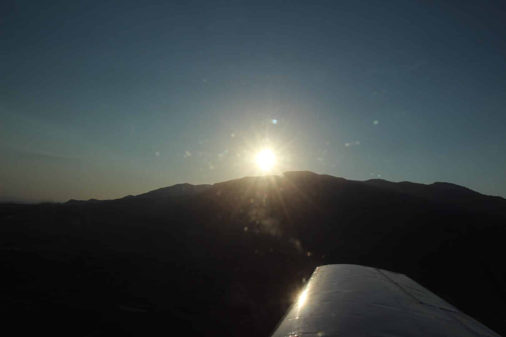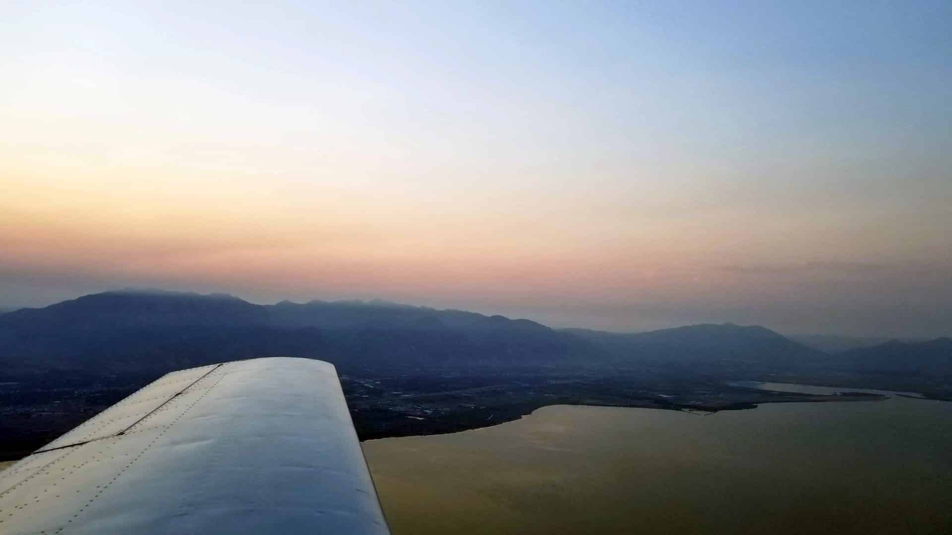 The winds were calm so I chose to take off on 16 for a straight out departure to the south. We lifted off into the growing light and I could see my wife standing at the edge of the ramp so we gave her a little wing wag to wave goodbye. We leveled off at 5,800′ until we were past the 6,000′ shelf of Salt Lake’s Bravo airspace and then continued our climb to 8,500′. As we passed over Utah Lake the sun was just beginning to rise above the mountains to the east of Provo. The sun was a deep red color because of the haze and smoke from summer wildfires.
