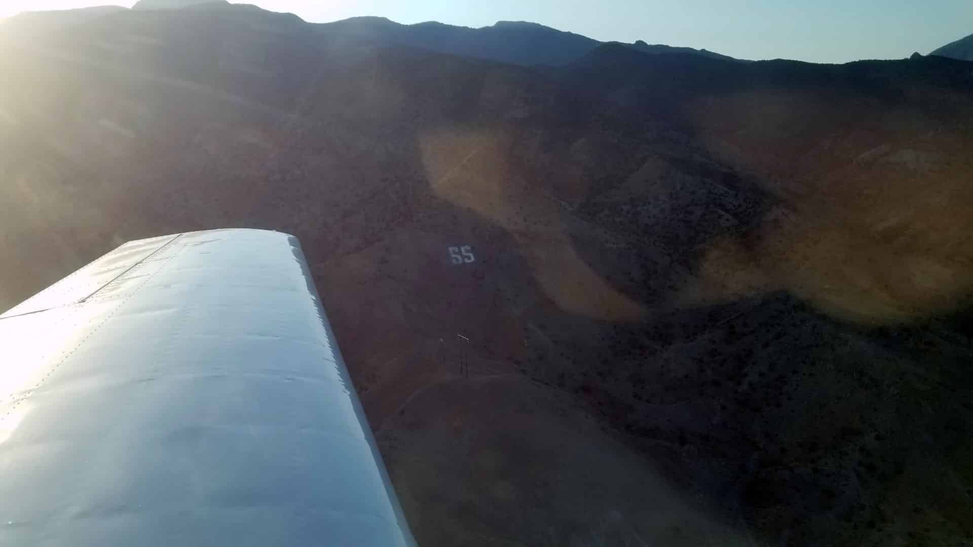 We headed south down the valley getting bounced around a little which I had anticipated. We are usually further to the west flying down the wide valley that Delta and Milford sit in and cruising along at 10,500′. Here on the leeward side of the mountains down at 8’500′, just below the ridge line the bumps were to be expected.