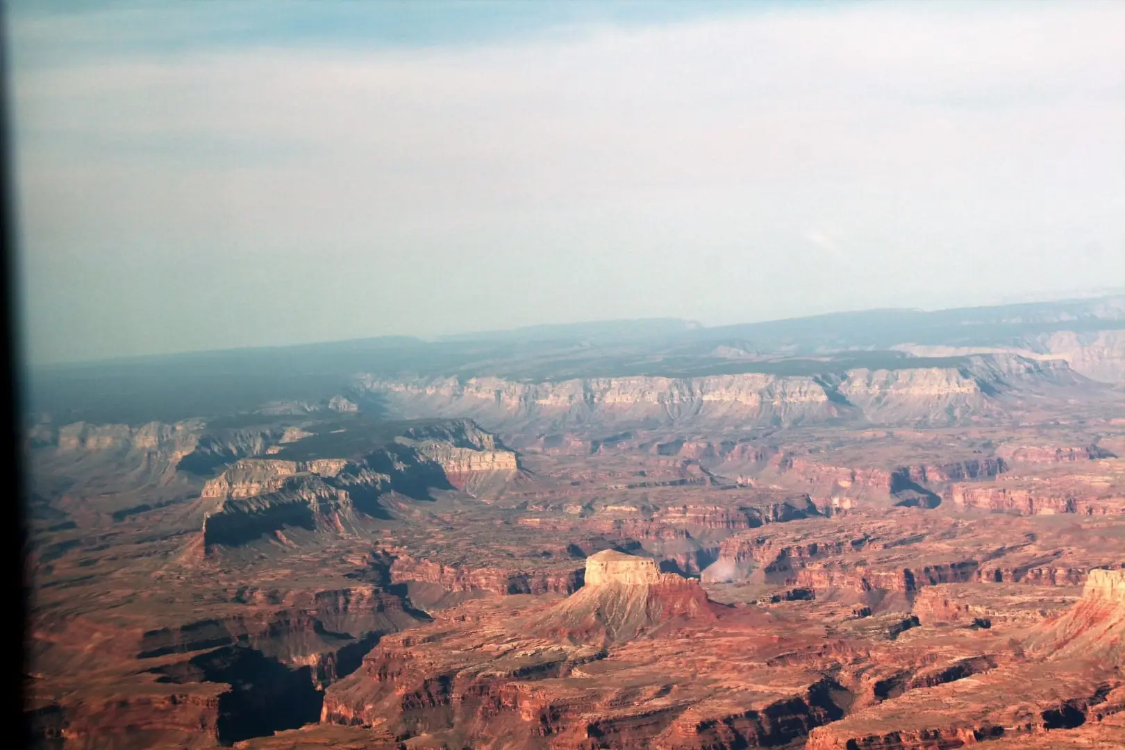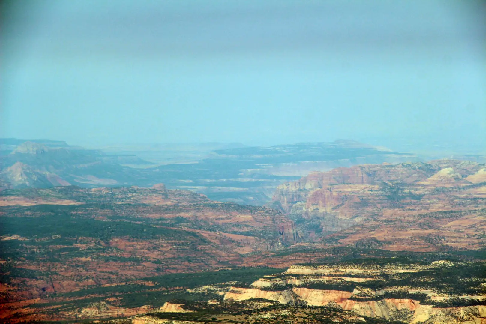 On the way south we saw more beautiful country including Zion off our right wing. We flew past Bryce Canyon but with the haze and smoke in the air combined with the morning sun it was hard to see much off the left wing to the east. I have flown over the Grand Canyon on commercial flights between 30-40,000′ but those do not do it justice. At 10,500′, the lowest altitude you can fly it at, the canyon is more than impressive. The plateau below you is roughly 6,000′ and drops down to the Colorado river thousands of feet below that.