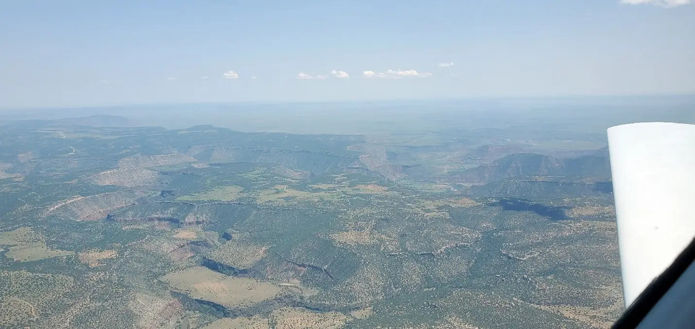 The first leg would be the longest of the day as there was a lot of moisture in the air, and even though it was early, there were storms to go around. The scenery was beautiful and just over four hours later we were touching down in Grants, NM (KGNT). We fueled up, I checked the weather briefing for the next leg, and we were on our way. It wasn’t any too soon as there were thunderstorms to the north and directly east. We wound our way south around them, along the south side of Albuquerque, and then north-east to Garden City, KS (KGCK). Flying over the plateaus and canyons east of Albuquerque was stunning.