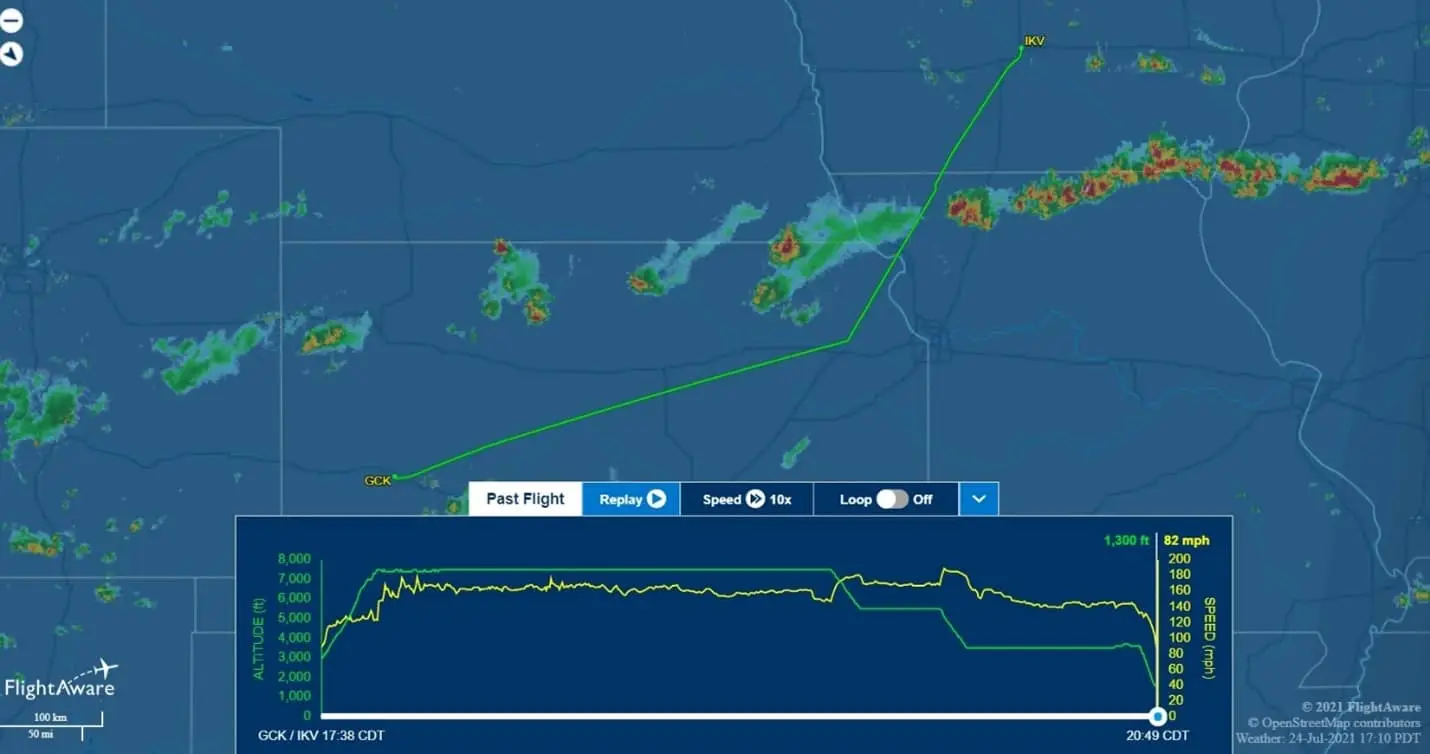 The final leg of the day would be 3.4 hours to Ankeny, IA (KIKV) which is on the north side of Des Moines. My weather briefing at KGCK had shown storms building to the north, so we headed east to Topeka to get around them. In the time between when we took off from KGCK to when we turned north at Topeka there was a second line of storms which was about 160 miles long that had developed. However, there was a gap about 60 miles wide and the storms weren’t moving so we headed for the gap and upon reaching the other side we were rewarded for with a spectacular sunset. We landed at KIKV, booked a room, and had the most entertaining Uber ride I have ever had. The driver was just telling stories the whole ride.