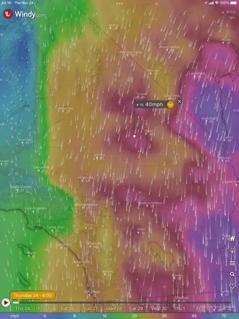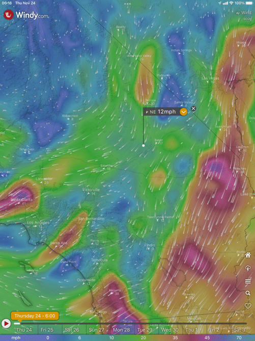 The weather forecast was clear, but the winds were going to be brutal. Two months earlier I had scrubbed a trip to St George when the winds at 10,000’ were blowing perpendicular to our path at 45+mph across the 11,503’ top of San Gorgonio. That wasn’t a ride I had any interest in participating in. This time the winds were forecast just as strong but would be coming from the north across the high desert but no tall peaks. I had already received my preflight briefing when a friend sent me pics of the winds at 10,000 and 3,000 along with “You might want to stay lower.”