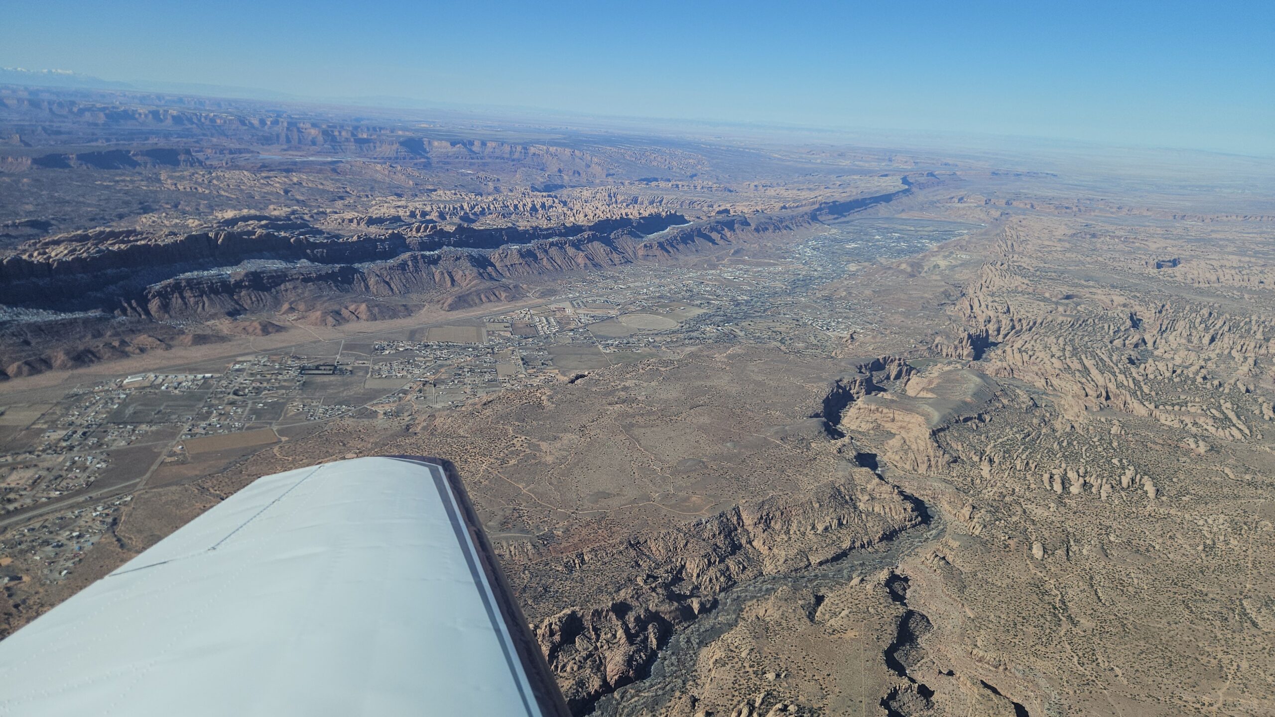 The flight was beautiful. I love flying routes I’ve never flown before and seeing new scenery. The rocks around Moab were stunning and the snow in patches along the route added some variety.