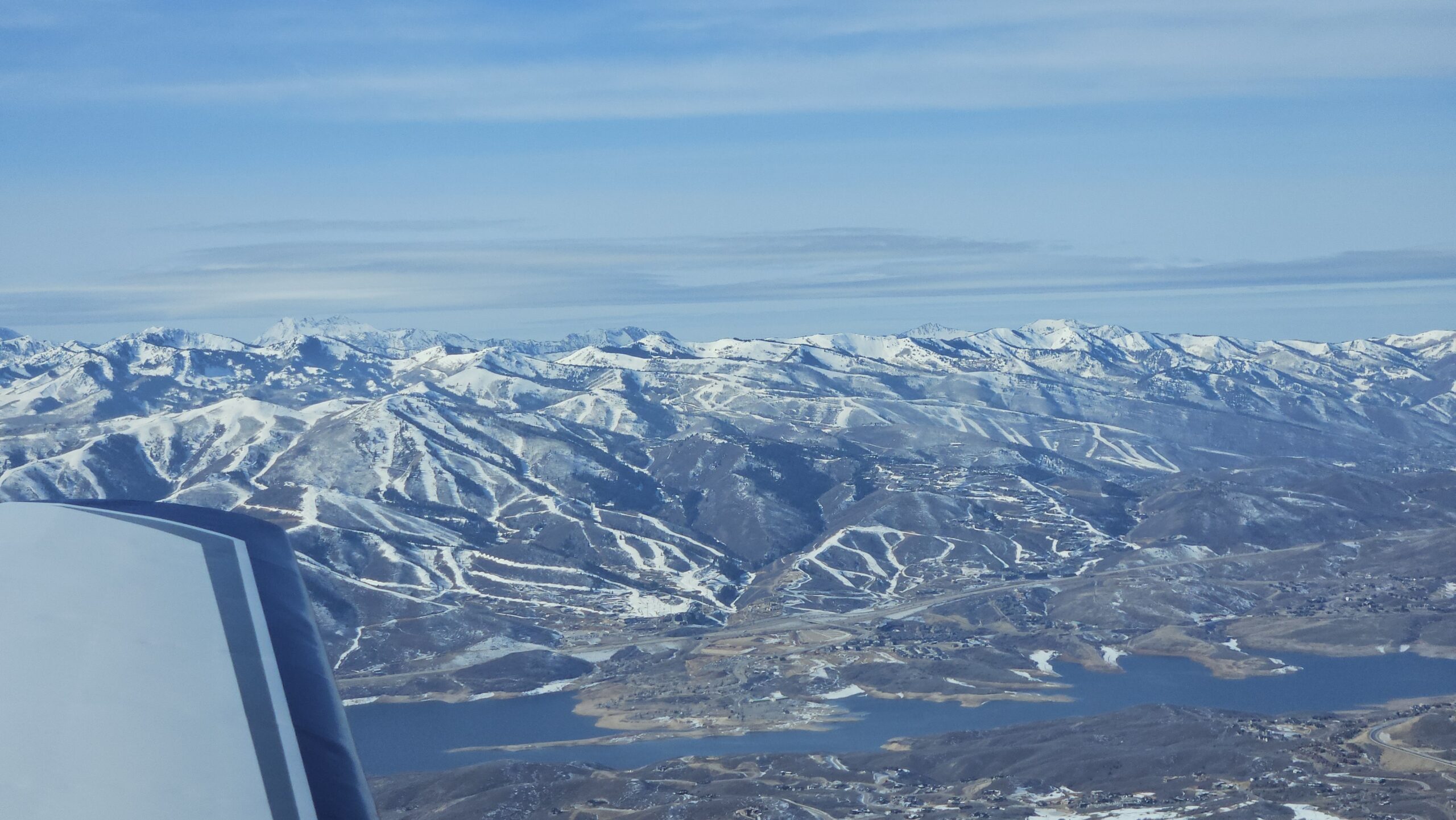 Flying past Park City, you could see just how little snow they had at that point—the mountains were mostly brown with just a dusting of snow and white ribbons coming down where they had made enough snow just to cover some of the ski runs. Bear Lake was beautiful as always, and the farther north we went the more snow there was until all of the hills and mountains were white.