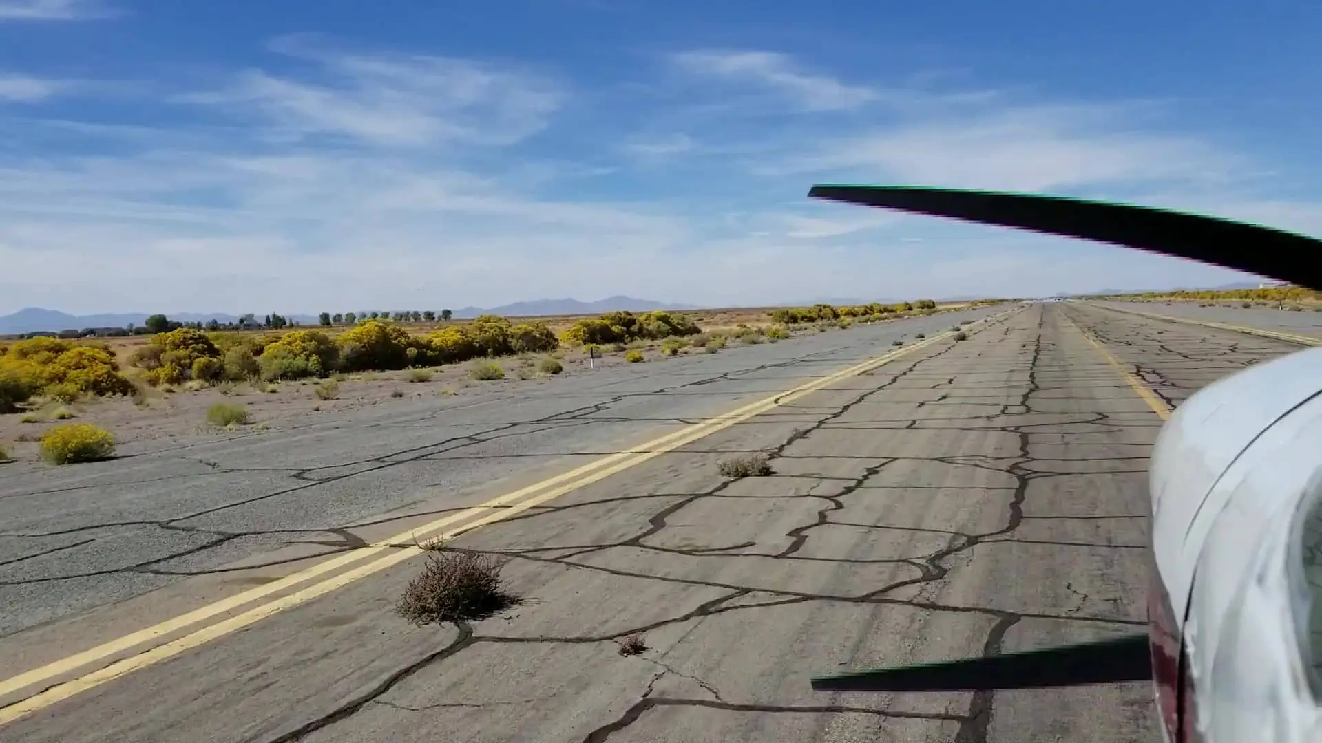 We landed in Delta and although it is the cheapest fuel around it may be the last time we stop there. The runway has always been a little rough but as we were rolling out I saw large tumbleweeds growing up through the cracks along the sides of the runway. We turned onto the taxiway and there were more, enough that I pulled out my phone and stuck it out the window to record them as we taxied along.