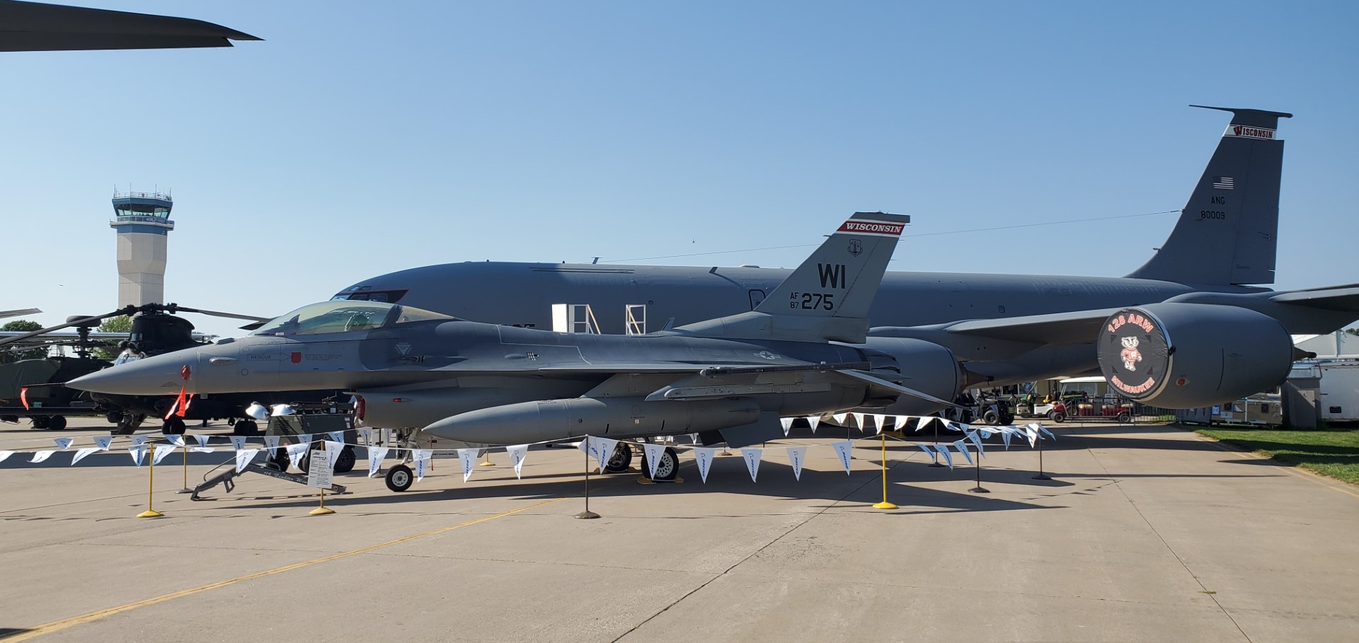 After some back and forth between him and another marshal he directed us to start up and follow the new guy. Eventually we pulled up at the end of one of the rows of planes and he gave us the signal to shut down, blocking the end of the taxiway for the row. “Are we pushing back from here?” I asked. “Nope, this is your spot” he replied. “Where do we pitch our tent?” was my next question. “Wherever you want,” he said with a smile. “Welcome to the show.”