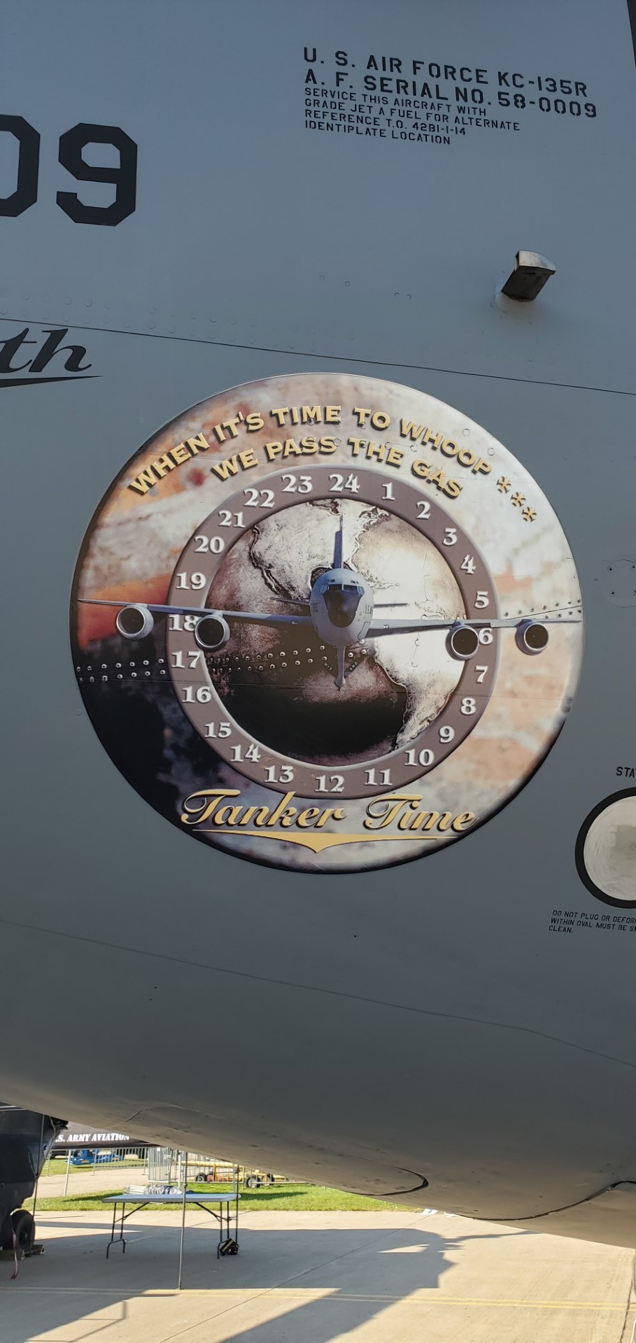 We arrived at our “First” parking spot, shut down, and climbed out. “Let me give you your arrival briefing,” the marshal said. “You are parked outside the burn line, so you need to get all your stuff out of the plane because you won’t be able to come back and forth to it.”