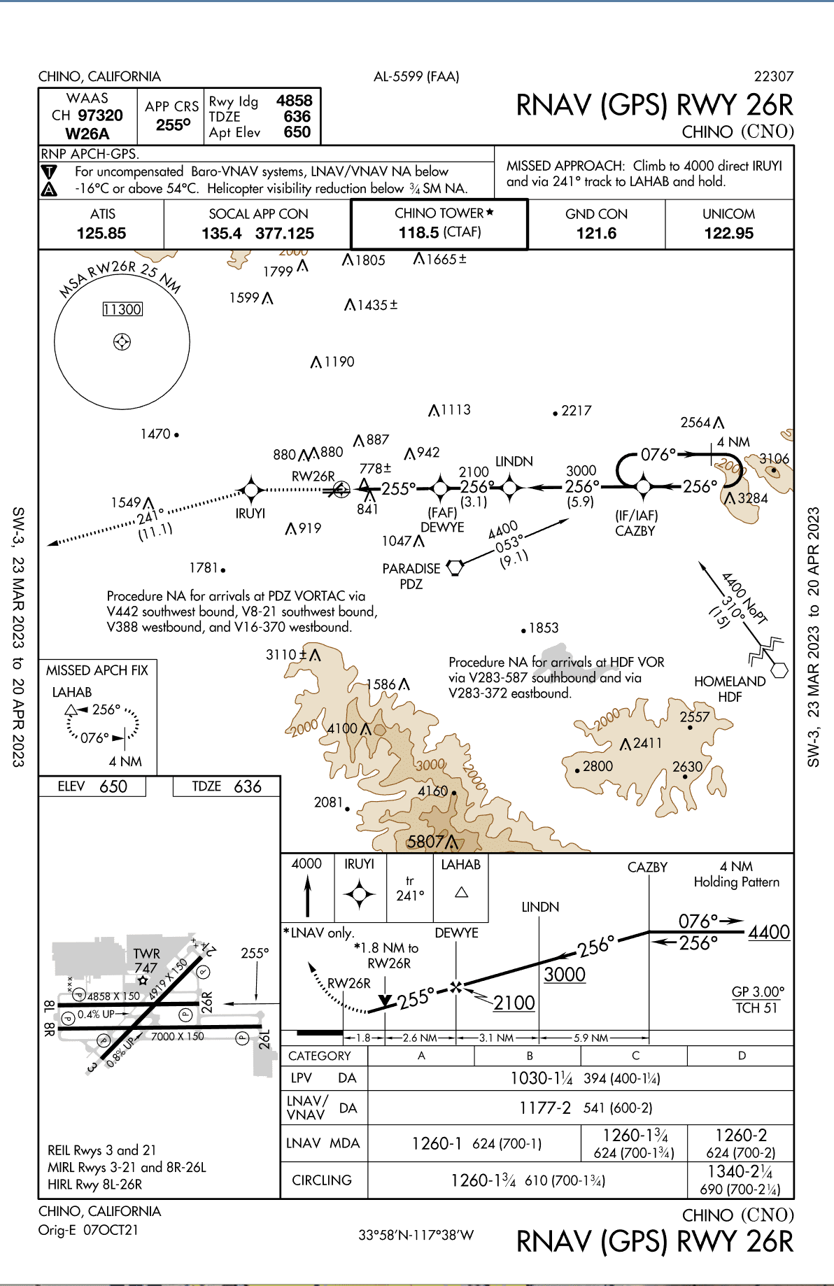 Me: “Chino Tower, Mooney 78878 on the RNAV 26R practice approach.”