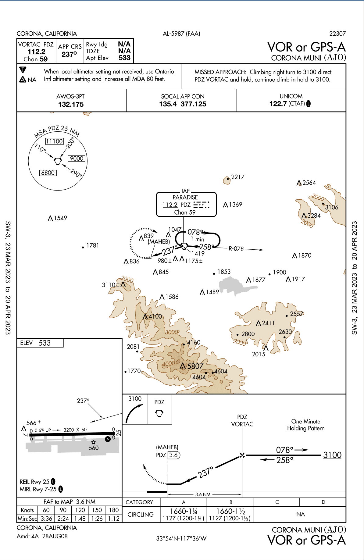Me: “SoCal Approach, Mooney 78878 missed off Chino, we’d like the hold at Paradise then the GPS-A into Corona.”